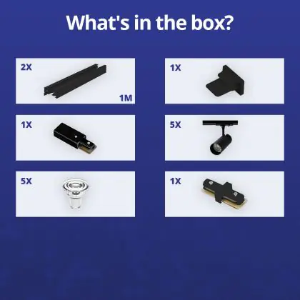 Beschreibung Bright Choice Komplettset 1-Phasen Rail 2 Meter Schwarz | incl. 5x Spot + GU10 2700K 3W Dimmbar + Abschlusskappe, Stromanschluss und I-Verbinder