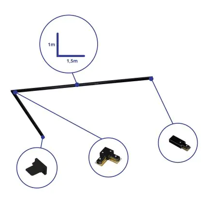 Beschreibung Bright Choice Rail Set 1-Phasen L 1 x 1,5 Meter Schwarz | incl. Abschlusskappe, Stromanschluss und L -Verbinder