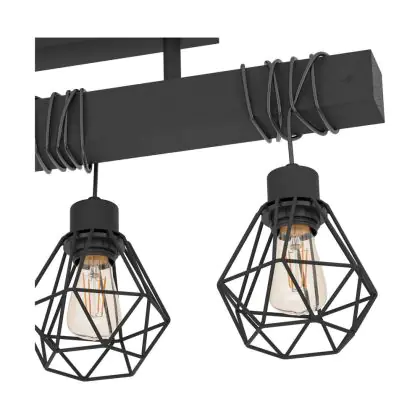 Eglo Deckenleuchte Townshend 5 Stahl Holz Schwarz | IP20 - Geeignet für 3x E27