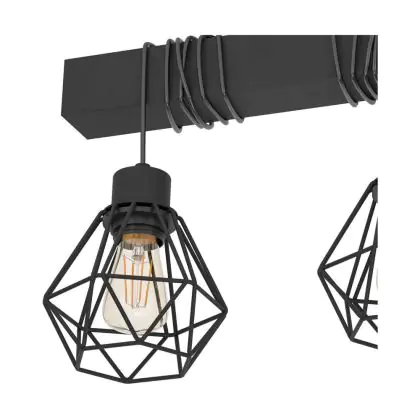 Beschreibung Eglo Deckenleuchte Townshend 5 Stahl Holz Schwarz | IP20 - Geeignet für 3x E27