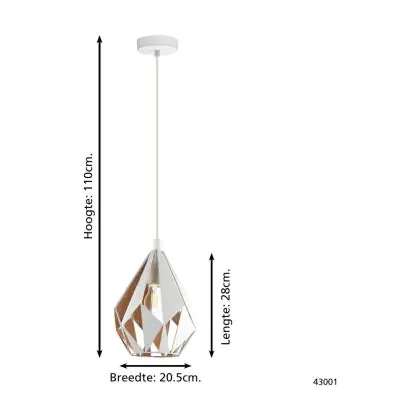 Eglo Pendelleuchte Carlton 1 Stahl Weiß Gold | IP20 - Geeignet für 1x E27