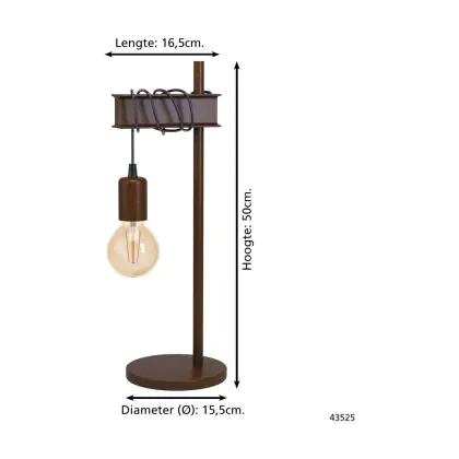 Eglo Tischlampe Townshend 4 Stahl Braun Schwarz | IP20 - Geeignet für 1x E27