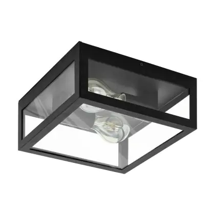 Beschreibung Eglo Wand und Deckenleuchte Amezola Stahl Schwarz | IP44 - Geeignet für 2x E27