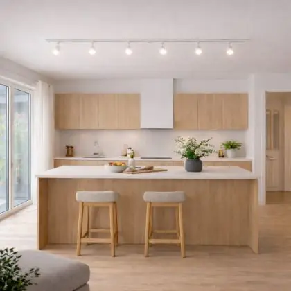 Der LED-Schienenstrahler kommt mit der Farbtemperatur daher. Als Faustregel gilt: Je niedriger der Kelvinwert, desto gemütlicher wirkt das Licht.