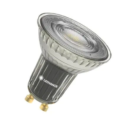 Die Ledvance LED Reflektor GU10 PAR16 6.1W 575lm 36d - 927 Extra Warmweiß | Dimmbar - Ersatz Für 80W ist eine effiziente GU10 LED-Lampe und der perfekte Ersatz für Ihre konventionelle Halogenlampe mit 80W und einem GU10-Sockel, bei welchem die zwei Stifte einen Abstand von 10 mm zueinander haben. Zudem strahlt das Produkt Licht in der Farbtemperatur aus und punktet durch eine lange Lebensdauer.
