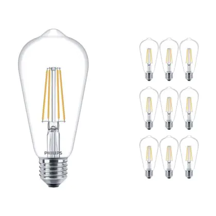 Mehrfachpackung 10x Philips Corepro LED Glühbirne E27 Edison Fadenlampe Klar 7W 806lm - 827 Extra Warmweiß | Ersatz für 60W