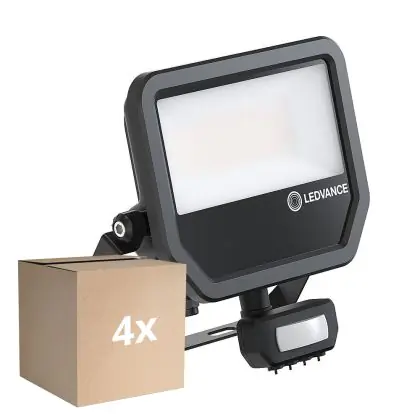 Der Mehrfachpackung 4x Ledvance LED-Scheinwerfer Aluminium Schwarz 41W 5500lm 100D - 830 Warmweiß | IP65 - Bewegungs- und Lichtsensor - Symmetrisch ist ein Scheinwerfer und strahlt Licht in der Farbtemperatur aus. Zudem punktet der LED-Scheinwerfer durch eine lange Lebensdauer.