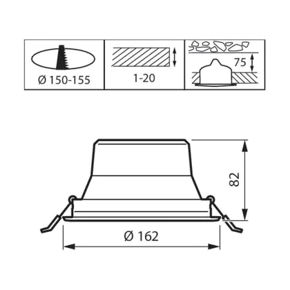 Der Ausschnitt einer Leuchte unterscheidet sich von den Abmessungen der Leuchte selbst und bezeichnet speziell die Größe der Öffnung in der Decke, die für die sichere Montage der Lichtquelle benötigt wird.