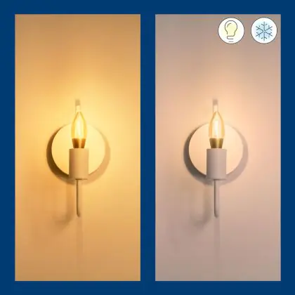 Die E14 LED-Lampe von WiZ hat als Farbtemperatur. Als Faustregel gilt: Je niedriger der Kelvinwert, desto gemütlicher wirkt das Licht.