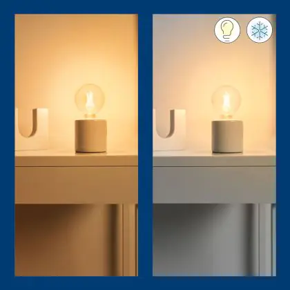 Die E27 LED-Lampe von WiZ hat als Farbtemperatur. Als Faustregel gilt: Je niedriger der Kelvinwert, desto gemütlicher wirkt das Licht.