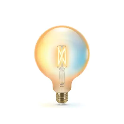 Die WiZ Smart LED E27 Globe G95 Fadenlampe Gold 7W 640lm | Höchste Farbwiedergabe - Dimmbar - Ersatz Für 50W ist eine effiziente E27 LED-Lampe mit Retrodesign und der perfekte Ersatz für Ihre konventionellen 50W Lampen mit E27. Zudem strahlt sie Licht in der Farbtemperatur aus und punktet durch eine lange Lebensdauer.